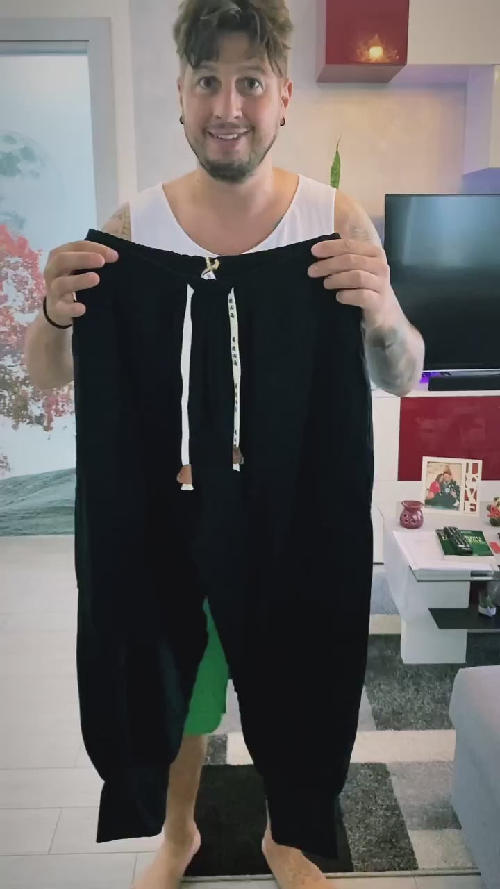 Kaze - Pantalón harem cómodo de algodón - Negro
