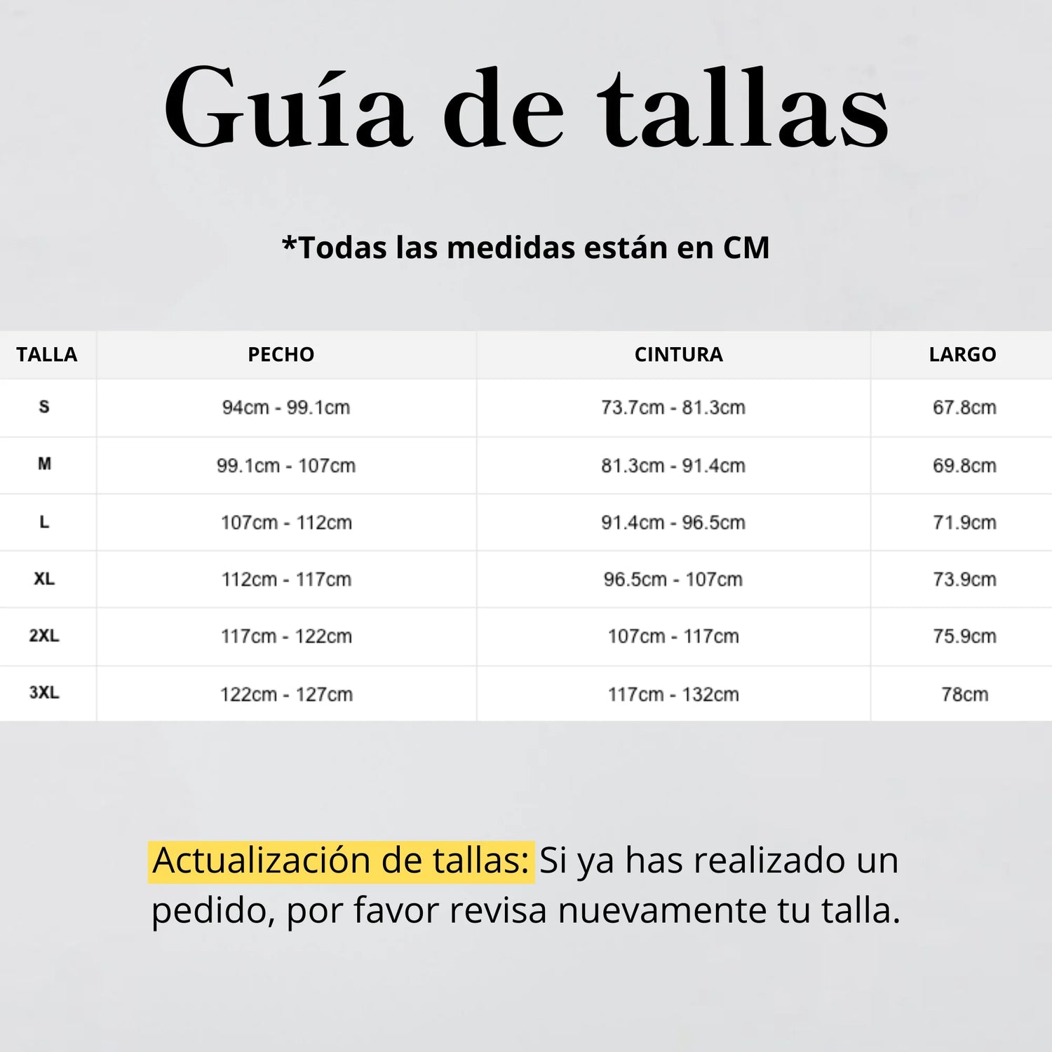 Guía de tallas