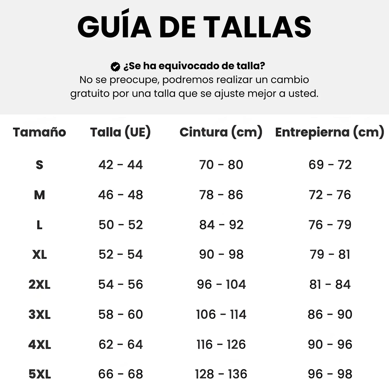 Si se ha equivocado de talla, no se preocupe. Procederemos al reembolso para que pueda realizar un nuevo pedido con la talla que mejor le convenga.