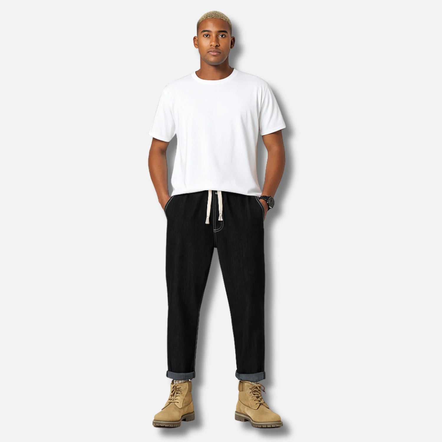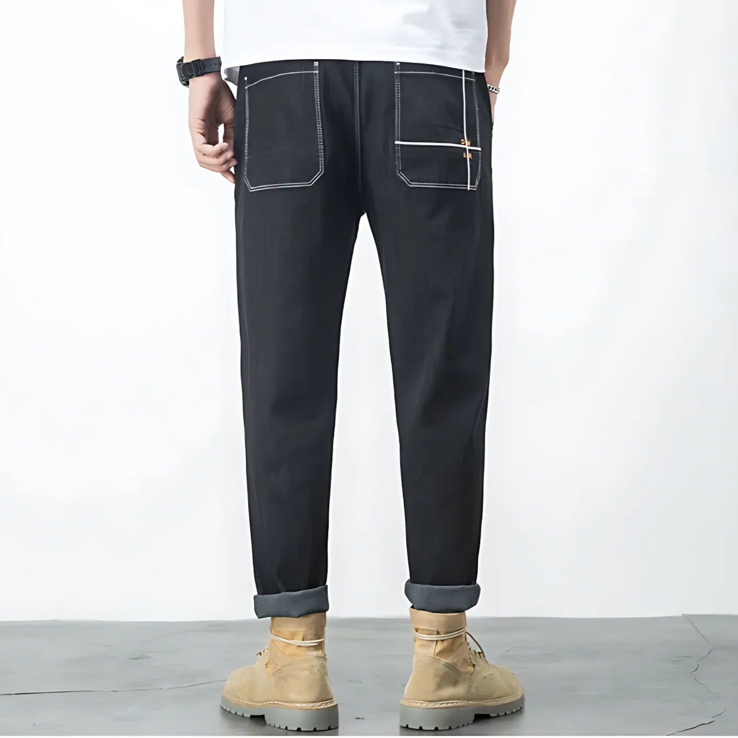 Equipados con bolsillos laterales y un bolsillo trasero funcional, los pantalones Kurø te acompañan con elegancia en tus días activos, tus veladas refinadas y tus viajes más exigentes.